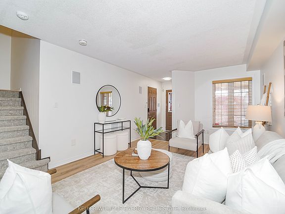 Welcome to this beautifully maintained 3-bedroom, 3-bathroom townhome in the highly sought-after Somerset community of Northeast Ajax. Freshly painted and featuring brand-new luxury vinyl flooring throughout, this home blends modern style with low-maintenance living. The staircase offers new plush carpeting over natural oak steps, adding warmth and comfort. Enjoy three spacious bedrooms and a partially finished basement, perfect for a playroom, home office, gym, or additional living space. The home also features a beautiful, private backyard with a large deck-ideal for family gatherings, BBQs, or quiet relaxation. Situated in one of Ajax's most desirable family-focused neighbourhoods, this property is walking distance to two elementary schools, close to high schools, parks, shops, and transit. Minutes from Deer Creek Golf Course, places of worship, and major routes including the 412/401, this location offers exceptional convenience. Well cared for and move-in ready, this townhome shows beautifully and is perfect for first-time homebuyers, young families, or those looking to move up. A must-see!