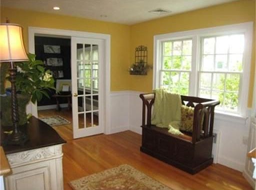 Golfers Needed! This Cape plays like a Colonial with 4 beds, 3.5 baths, 2 car garage with details such as hwd, wainscoting, chair rails, built ins and decorative molding. Enjoy the views of the greens while dinning in front of the brick fireplace. Sun lit living room with French doors leads you to the home office with built in cherry desk and cabinetry. Master Bedroom features walk in closet and en suite bath with classic subway tile, double sinks, lots of storage and 2nd floor laundry.