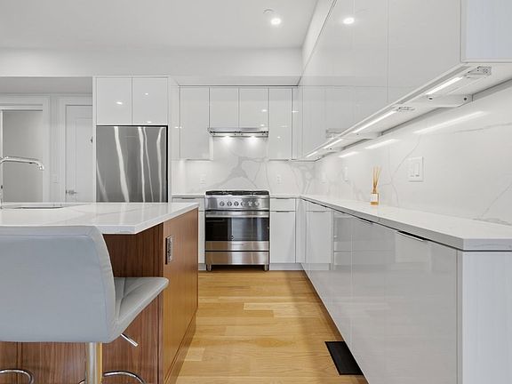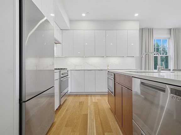 Located on the Brookline border, one block away from the green line, this 2020 newly renovated condo is 1067 sf offering 2 beds, 2.5 baths. This unit blends timeless Victorian character with modern, thoughtfully designed living. The main floor features an inviting, open layout with a spacious living and dining area, ideal for relaxing at home or hosting friends. The contemporary kitchen is outfitted with stainless steel appliances, quartz countertop and backsplash, and striking glossy white and wood-grain cabinetry. Both bedrooms are located on the lower level, each offering a generous closet and en-suite bathroom. This home brings in an abundance of natural light, thanks to its high ceilings and oversized windows. One off street parking is located in the rear of the building down a wide driveway. This home is located next to local cafes, restaurants, and the shops of Beacon Street, as well as the scenic Chestnut Hill Reservoir!