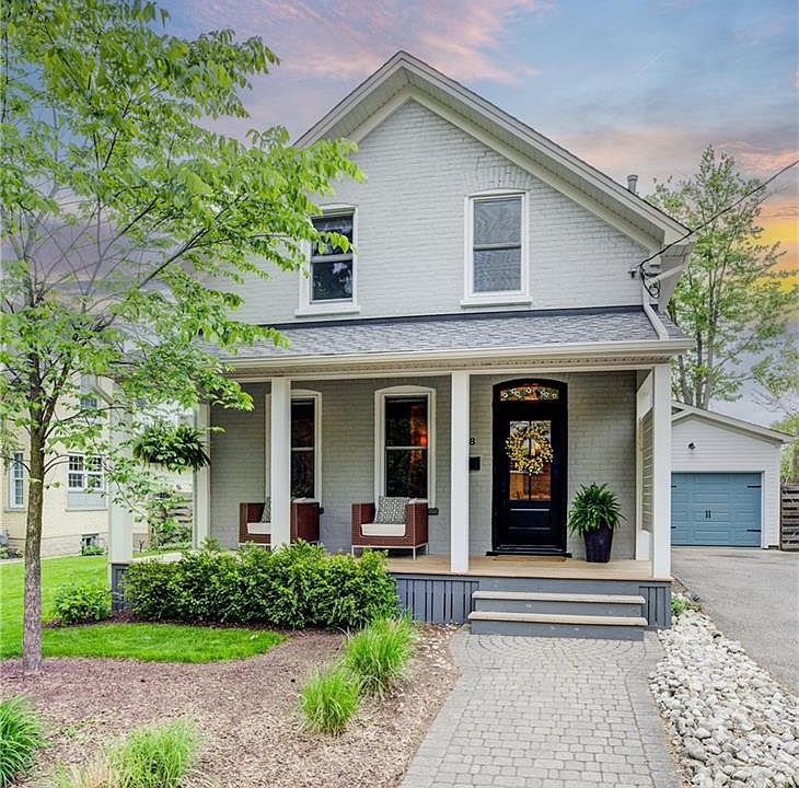 Stunning Renovated Home on Rare Double Lot in the Heart of Uptown Waterloo. This beautifully renovated 3+ bedroom, 2,788 sq. ft. (of finished living space) home is a rare find on a double lot in Uptown Waterloo. Thoughtfully redesigned in 2020, the extensive renovation and addition include updated plumbing, electrical, engineered hardwood floors, new drywall, and striking Maibec wood siding. Enjoy serene outdoor living with large covered front and back porches, an expansive stone patio, mature trees, and low-maintenance landscaping—all offering privacy and picturesque views of Uptown’s historic architecture. The fully fenced backyard features double-gated access, perfect for recreation or future expansion. Inside, the home boasts 9-foot ceilings, custom window coverings, and abundant natural light. The spacious living and family rooms offer ideal gathering spaces, highlighted by a cozy gas fireplace. The chef-inspired kitchen features a 10-foot quartz island, premium KitchenAid and Bosch appliances, and a triple-panel sliding door that opens to panoramic backyard views. Retreat to the private primary suite with elevated views of Uptown and a spa-like ensuite complete with marble floors, a free-standing soaker tub, and luxurious finishes. The finished basement (8-ft ceilings) offers versatility as a home office, recreation room, or guest suite with ample closet space, while a second basement provides extensive storage and a utility/workshop area. A 1.5-car garage and parking for up to 7 vehicles add convenience and flexibility, with access from both the front and rear of the property. Zoned R4, this property presents a unique opportunity to add up to four units or a coach house, as per City of Waterloo requirements.