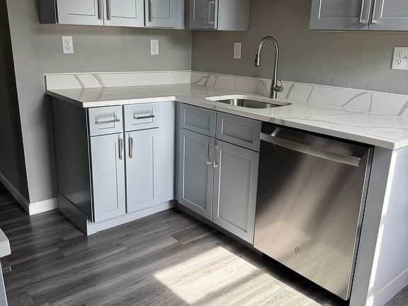 includes stainless steel appliances (refrigerator with ice and water/stove/dishwasher/microwave), vinyl flooring, carpeted bedrooms, and tile bathroom. Brand new gas combination unit provides on demand baseboard heat and hot water. Off street parking available. Dog park on site. One pet included in the rent
