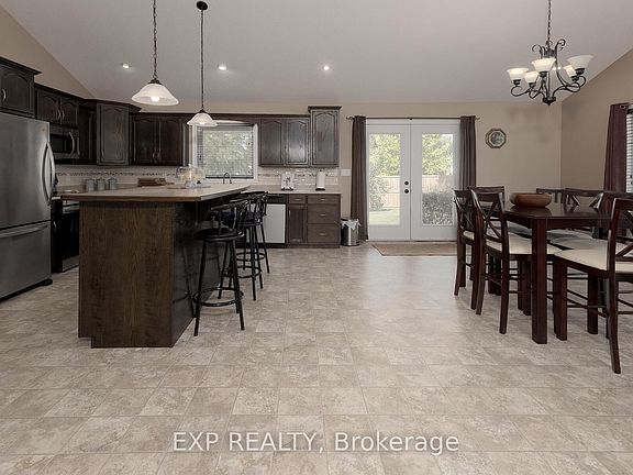 This beautiful home, situated on a beautifully treed corner lot with impressive curb appeal, offers a perfect balance of comfort, style, and convenience in the desirable community of Vienna, Ontario. Just minutes from the pristine Port Burwell Sandy Beach, Lake Erie, a marina, and local campgrounds, this property provides an idyllic setting for outdoor enthusiasts. Inside, the open-concept main floor features soaring cathedral ceilings, a spacious family room with a natural gas fireplace, and a well-appointed kitchen with oak cabinetry, stainless steel appliances, and a central island, ideal for both cooking and entertaining. The master bedroom is a serene retreat, complete with a 4-piece ensuite and walk-in closet, while two additional bedrooms share a 4-piece bathroom. The mostly finished basement offers endless potential with four large windows, a 4-piece bathroom, and a fruit cellar, perfect for extra storage or a future recreation area. Outside, the fully fenced backyard, covered back porch, and heated 2-car garage with automatic opener provide both functionality and comfort. Additional features include a 200-amp electrical service, natural gas furnace, air conditioning, and a sump pump, ensuring year-round comfort. Life in Vienna combines the charm of a small community with easy access to scenic beaches and recreational opportunities, making this home a perfect choice for those seeking a peaceful and active lifestyle.