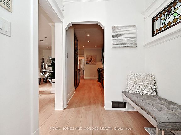 Fabulous Detached All Brick 1 1/2 Storey With 3 Bedrooms, main Floor Den and 1 1/2 Bathrooms! Bright And Airy, Charm Abounds With The Original Stain Glass Window in the Front Entrance, Living Room has the Original Working Brick Fire Place And Is Open To The Spacious Dining Room, Updated Kitchen With Loads of Cupboards!, Separate Side Entrance to Basement that is a blank canvas for creating additional living space, Den Provides Direct Access To The Wonderful Fully Fenced Back Yard. Upstairs Includes Large Bright Primary Bedroom With Walk In Closet and Loads of Room for a King Bed, Cute Brand New Powder Room & Adorable character filled 2nd Bedroom. Walk to Shops, Schools and Grocery Store, Easy Access to downtown via Subway and TTC. Home has a mutual drive way but not currently used for parking.