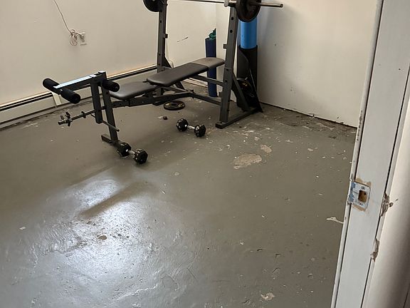 1 bedroom upstairs, 1-2 bedrooms in basement. 1 bathroom, semi-finished basement; office room, extra room