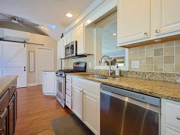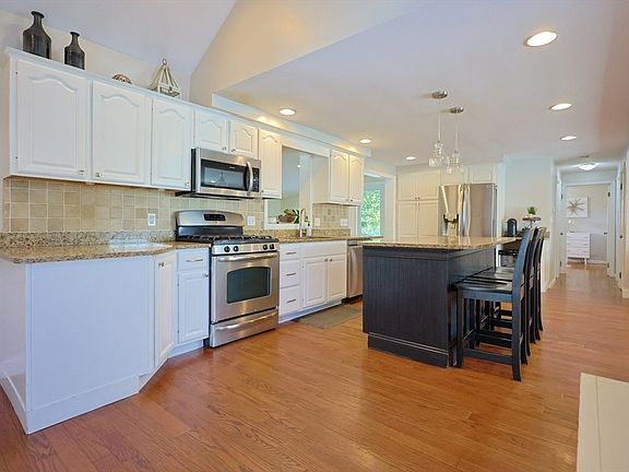 Welcome to this charming 4 bedroom 2 bath Cape style home full of charm and modern convenience. The main level features an open floor plan with hardwood floors throughout. A modern kitchen that is complete with an island, granite countertops, stainless steel appliances, and plenty of cabinet space perfect for everyday living. Upstairs you'll find comfortable bedrooms and a full bath. The finished basement expands your living options with space that can serve as a family room or rec room with a separate office space. Step outside to the private fenced in yard with a spacious patio, a fire pit, and an above ground pool. New front doors in 2023, main level front windows replaced in 2018, Hot water heater 2022, mini splits 2022, above ground pool 2019, driveway sealed 9/2025. A one year home warranty included!