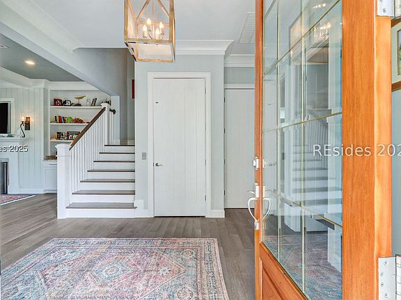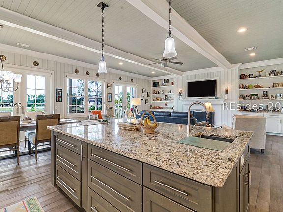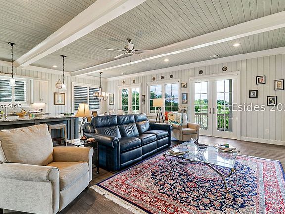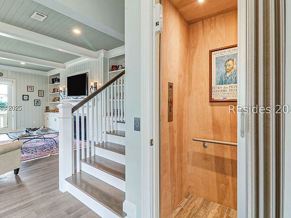 Exceptional marshfront home with breathtaking views. Built in 2017, this stunning 4-bedroom, 4-bathroom residence offers over 3,000 square feet of beautifully designed living space, showcasing phenomenal water, marsh, and sunset views. Inside, you'll find 10-foot ceilings on the main level and 9-foot ceilings upstairs, creating an airy, open feel throughout. The chef's kitchen and luxurious baths feature granite countertops, custom tilework, and rich oak flooring that flows seamlessly through the home. Energy efficiency shines with a spray-foamed attic and thoughtful construction details. A flex space on the lower level provides the perfect spot for a home gym, hobby area, or playroom, while the private elevator offers effortless access to all floors. Nestled within a peaceful, low-density neighborhood, residents enjoy the relaxed coastal lifestyle, with access to Graham Lane's day dock, ideal for kayaking, fishing, or crabbing, steps from home. This home captures the best of Lowcountry living, modern design, tranquil surroundings, and unmatched views