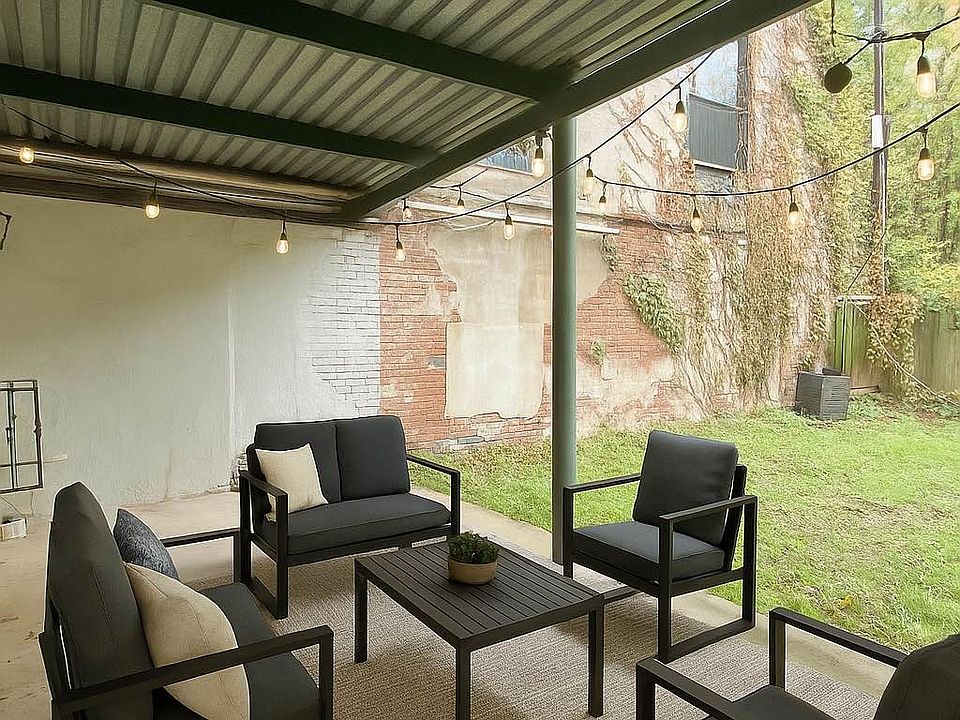 Private gardenTons of natural lightHuge basement bedroomOpen kitchen with barHardwood floor