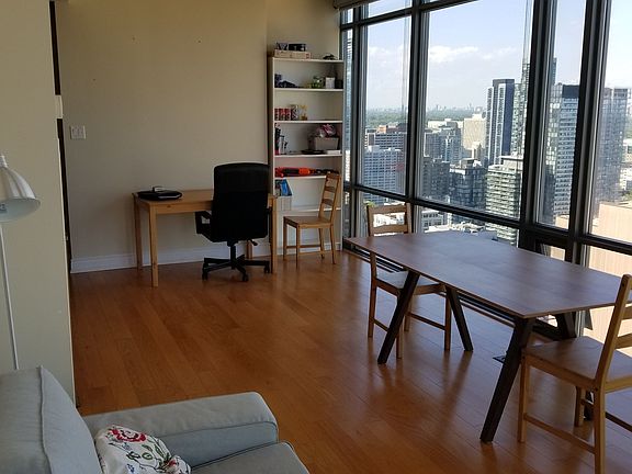 Location, Location, Location! Furnished Open Concept 2 Br + Den Corner Unit With 9Ft Ceilings. Breathtaking Unobstructed South East Views Of The City And Lake. Wall-To-Wall Floor To Ceiling Windows, Hardwood Flooring in Living/Dining, Convenience At Door, Steps To Ttc, University, Hospitals, Restaurants. Amazing Amenities Including Concierge, Exercise Room, Indoor Pool And Visitor Parking.