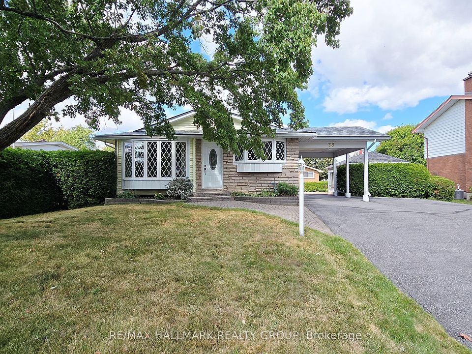 PRIME LOCATION! Check out this delightful 3+1 Bedroom, 2 Bath Bungalow on a spacious 65' x 101' in Bells Corners. The convenient location has everything you need nearby, from stores, restaurants and shops plus close to DND Headquarters, Queensway Carleton Hospital, new LRT, Kanata's High Tech Sector, NCC green space and easy access to Highway 417 & 416. Terrific layout with stunning bay windows in the living room and dining area allows natural light to pour in. Beautiful hardwood floors on main level in the living room and through to the 3 bedrooms and tile flooring in the kitchen, dining & bathroom. A stone fireplace is featured in the living room while the lovely oak kitchen has lit glass upper cabinets, backsplash, pot drawers and double sink and access to the carport and basement. Lovely colonial trim, doors and crown molding enhance the main level throughout. A stunning solid oak staircase leads to the lower level featuring a rec room with gas fireplace, spare guest bedroom with walk-in closet, 3 piece bath, laundry, workshop & lots of storage. Outside, there is an inviting interlock front walkway, step & gardens, a carport with side door access, double paved laneway, parking for 4 or more cars, a large patio complete with natural gas BBQ hook-up, a clothesline and a handy 16' x 12' shed with cabinets & electricity. Includes appliances, central vac & central air! A true gem to call home!