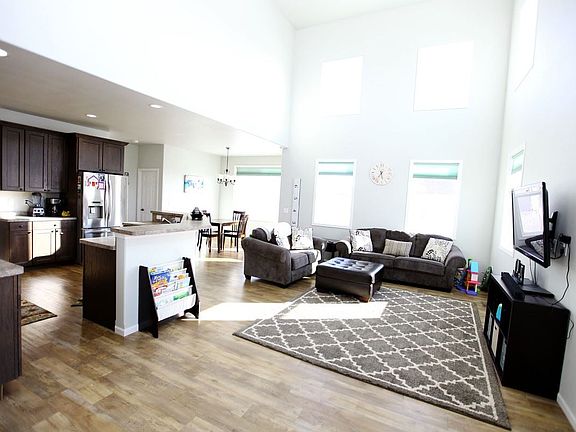 CORNER LOT--Enough space for the whole family! Walking into this home you'll be greeted with vaulted ceilings open to the kitchen, living room, and dining area. The kitchen features stainless steel appliances, modern cabinetry, and a breakfast bar. There is a convenient 1/2 bath off the kitchen. The master bedroom is located on the main floor with big windows and an en suite with a full tub/shower, dual sinks, and a HUGE walk in closet! The laundry room is located off the garage. Heading upstairs you'll find two good sized bedrooms both with walk in closets and a joining full bath with dual sinks! Downstairs has 2 good sized bedrooms, a full bath, large living room area. The garage is fully finished and has an electric heater for the cold months! There are underground sprinklers in the front and backyard. The backyard is great for entertaining it features a deck area and is completely fenced in.