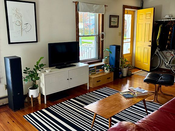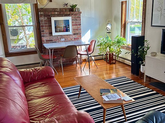 Tons of character and charm! This townhouse style apartment is a quick walk to Downtown Northampton and easy access to major routes. The sunny living room has exposed brick and windows on two sides. The eat in kitchen has a gas stove, refrigerator, dishwasher, wood beams, exposed brick, a large center island and lots of cabinet space. On the second floor is the extra large primary bedroom with vaulted ceilings, a skylight , and doors out to a porch. The second floor also has another bedroom and a full bath with a shower and tub.