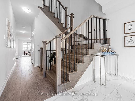 Stunning Deco Semi-Detached Home in the Sought-After Richlands Community. Leonard model 2,065 sq.ft. above-ground living space with upgraded two ensuite bedrooms. 9 feet ceiling on both floors creating a bright and airy atmosphere throughout. Modified Open-concept main floor is finished with elegant hardwood flooring and gourmet kitchen. Large centre island with quartz countertops, stainless steel appliances, backsplash and lots of kitchen cabinets, perfect for family gatherings. Cozy dining room w/gas fireplace. 4 spacious bedrooms and 4 modern bathrooms, including two ensuite bedrooms for ultimate comfort and privacy. Oak stairs and iron pickets. Fenced backyard w/deck and composite fence. Long driveway for 2 outdoor parkings. No sidewalk. Surrounded by top-rated schools, beautiful parks, Costco, Richmond Green Sports Centre, shopping plazas, and easy access to Hwy 404.