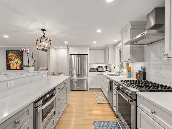 SELLER TO REVIEW ANY/ALL OFFERS TUES 7/30 @ 5PM. This gorgeous home is ready for its new owner to move right in! An addition and even more improvements were made to this already renovated multi-level home with flexible living spaces, making it an entertainer's dream inside and out. Front entry opens to bright Living/Kitchen/Dining space that was expanded to include a large dining area and added pantry to complement the beautiful Kitchen with top of the line appliances and ample workspace on your beautiful marble countertops. Pretty and bright heated Sunroom! The 2nd level boasts 4 good size BR's, hall bath and Primary BR w/ en suite and walk-in closet. 2 lower levels of flexible living space can be used as Exercise Rm, Fam Rm and/or Game Rm, and also includes private office, Laundry Rm and full Bath. Outside is a large, level backyard and expanded stone patio with pergola, fire pit and room for ample seating for year round entertainment! What's not to love?