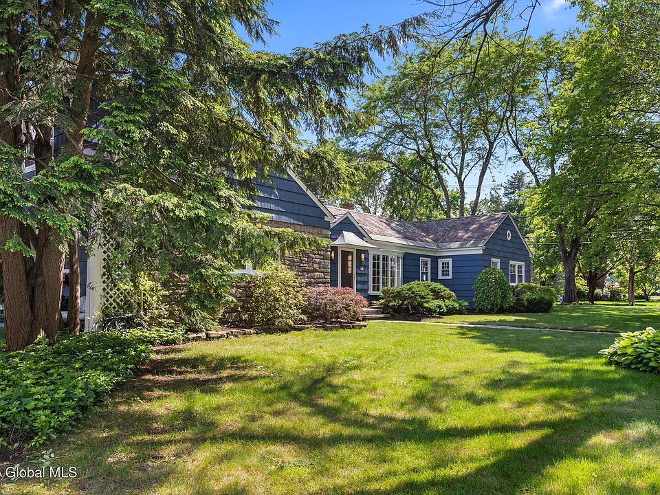 This beautifully maintained mid-century home sits on a quiet, tree-lined street in one of Glens Falls' most sought-after neighborhoods. Enjoy mostly one-level living with hardwood floors, built-ins, and large windows that fill the home with natural light. The updated kitchen blends modern touches with classic charm and opens to spacious living and dining areas. The first-floor primary suite adds comfort and convenience, while additional bedrooms offer flexible space for guests, hobbies, or a home office.