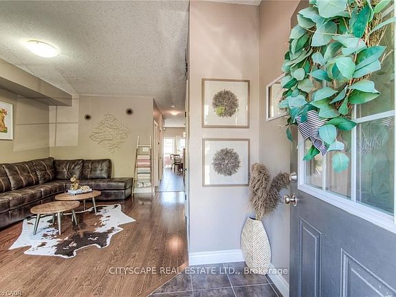 TWO PARKING SPACES INCLUDED! Available on Jan 1, 2026, this lovely townhouse unit is the perfect backdrop to kick off the new year with a bang! This charming 3-bed 2-bath unit has plenty of space for all types of residents, from young professionals to growing families and anything in between. Full of natural light, this well maintained unit is move-in ready. Enjoy the eat-in kitchen with beautiful countertops, lots of cabinet space, and direct access to the deck. Prepare to enjoy the summer to the fullest in this outdoor oasis, a perfect venue to unwind after a long day. Upstairs, the bedrooms are well laid out, with a spacious primary bedroom offering plenty of light through the three large windows and provides the luxury of a walk-in closet. Two additional versatile bedrooms share a beautifully appointed 4pc bathroom. Perfectly located, Highway 7/8 is only 1 minute away and Sunrise Shopping Centre is also nearby, offering major grocery stores and restaurants, not to mention daycares, schools, and parks and trails all within 8 minutes or less! This gorgeous townhouse has everything you need and want - the only thing missing is you! Book your private showing today!