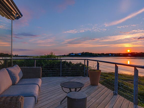BREATHTAKING SUNSETS OVER NANTUCKET SOUND. Perched above Buck's Creek with panoramic views stretching to Nantucket Sound, this extraordinary 1.3-acre Chatham property is a true waterfront sanctuary. Designed to embrace its breathtaking natural surroundings, the home features walls of glass and an expansive wraparound deck that blur the line between indoors and out. Spectacular sunsets create a daily spectacle. Spanning 3,878 sq. ft., this beautifully updated 4-bedroom, 3.5-bath home combines modern comforts with timeless coastal charm. Hardwood flooring runs throughout the main levels, complementing a light-filled kitchen at the heart of the home, flanked by two inviting living areas. The primary suite offers a serene retreat with dual walk-in closets, a private study, and a fireplace. Additional features include central A/C, natural gas heat, a whole-house generator, three fireplaces, and a two-car garage. The walkout lower level adds 950 sq. ft. of flexible living space--ideal for guests or recreation. Step outside to launch a kayak or paddleboard right from your backyard. Located in the sought-after Hardings Beach Hills, this contemporary property is one of a kind.