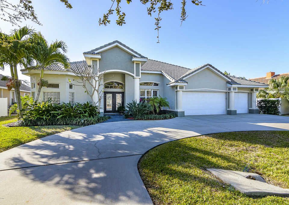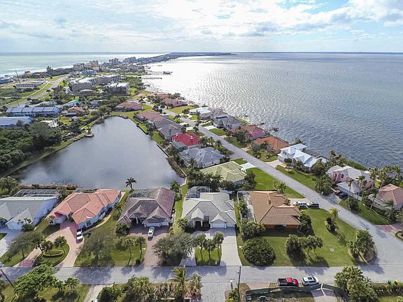 Stunning custom pool home is located on the quiet south side of Cocoa Beach. This beautiful home has a welcoming entrance with formal sitting room. This 3 bedroom split plan with an office is perfect home for entertaining. The kitchen is the heart of the home, right in the center of it all, with tons of storage, beautiful Sile Stone counters and breakfast nook with picture window. Open to the great room for family gatherings. The guest rooms are on the west side of the home and the master suite is on the east. Spa like master bath with double sinks and walk in closet give a relaxing feel. In the back yard the lanai and infinity pool and spa. All enclosed in almost a two story cage. Beyond the pool, sits a deck for your lounge chairs to watch the weather come in over the water