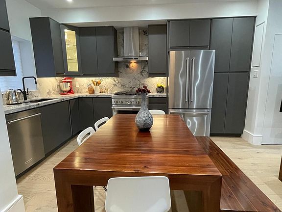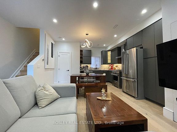 A truly unique property, this beautifully renovated freehold townhome offers modern finishes and timeless charm. The bright, open layout with 8 & 9 ceilings is complemented by a chefs kitchen featuring quartzite countertops, quartzite backsplash, stainless steel appliances, and a gas stove. The spa-like washroom provides a retreat at the end of the day, while the quaint private patio invites you to relax and entertain with friends and family. Complete with parking, in-unit laundry, and a fire sprinkler system, this home blends comfort and peace of mind. Tucked away on a quiet lane in the Junction, you'll love being steps to TTC, the UP/GO Train, local shops, cafes, and restaurants, with High Park, Roncesvalles, and Bloor West Village just minutes away.
