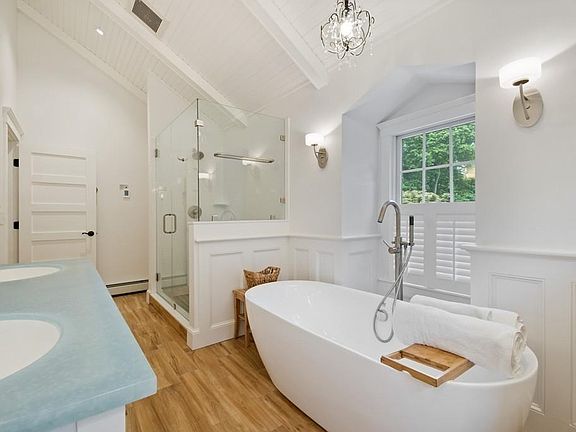 This 5-bedroom home offers the ultimate in flexible floor plans for nearly every lifestyle. The coveted, off-street location on the lower end of Jerusalem Rd. positions this home to take advantage of all that Cohasset has to offer: Bike/walk to the village, beach, town pool, library, baseball fields, schools, sailing club, weekly a Farmers Market. A 2016 addition offers a 2-car garage under a gorgeous master suite with his & her closets, glass & subway-tiled bath, and a large sitting room. The yoga studio/home office opens to a porch with french doors to let in the sea air. The 1st floor plays host to a grand entrance hallway, an oversized great room, and 4 more bedrooms (1 with separate au pair entrance) with 3 new full baths w/subway tiles. A quiet TV room/den has its own fireplace. The newly-upgraded kitchen with quartz counters & subway tiles offers access to a secluded patio for outdoor grilling. A bocce court & parking for 12 cars makes this the ideal home for entertaining & fun.