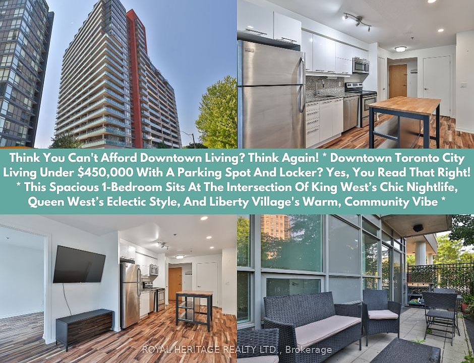 Think You Can't Afford Downtown Living? Think Again! * Downtown Toronto City Living Under $450,000 With A Parking Spot And Locker? Yes, You Read That Right! * This Spacious 1-Bedroom Sits At The Intersection Of King Wests Chic Nightlife, Queen Wests Eclectic Style, And Liberty Village's Warm, Community Vibe * Inside, The Airy, Open-Concept Layout Features A Sleek Modern Kitchen With Granite Countertops, Stainless Steel Appliances, Under-Cabinet Lighting, And A Dining/Living Space Designed For Effortless Entertaining- Or Skip The Cooking With Hundreds Of Foodie Hotspots Just Steps Away * The Sun-Filled Primary Bedroom Boasts A Full Wall Of Closet Space And A Large Window Overlooking Your Private Terrace, Big Enough For A Full Patio Set + Dining Chairs * Bonus: As A Main-Floor Corner Unit With Only One Neighbour, You'll Enjoy Unmatched Privacy, No Long Elevator Waits, And Zero Stairs To Climb * The Bridge Condos Offer City Living With A Neighbourhood Feel * Walk To Large Parks, Trendy Cafés, And BMO Field, Or Hop On Transit For Quick Access Anywhere In The City * This Well-Managed Building (Under 15 Years Old) Makes The Perfect Backdrop For Your Morning Coffee, Evening Wine, And Everything In Between * At 585 Sq Ft, This Lovingly Maintained Home Blends Style, Comfort, And Unbeatable Value- Especially Under $450K!! It Won't Be A Buyers Market Forever * Get In Now And Start Building Your Equity Here For Your Future!