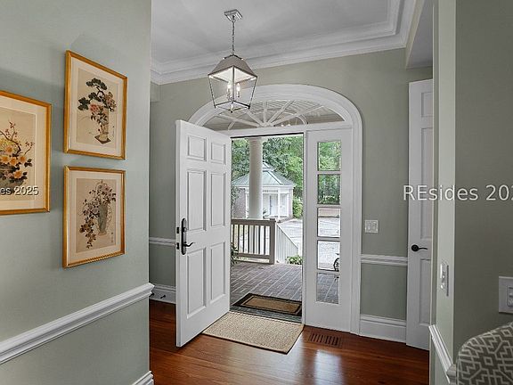 This exceptional Spring Island residence offers the rare opportunity to have a dock on deep water. The dock features a float and boat lift, providing convenient access for boating enthusiasts to explore the surrounding waterways with ease. This 5-bedroom, 5-and-a-half-bathroom home provides an idyllic retreat for both relaxation and recreation. Upon entering, guests are greeted by an atmosphere of refined elegance and breathtaking vistas, with sweeping views of Chechessee Creek gracing nearly every room. The heart of the home is the fabulous kitchen, a chef's delight equipped with state-of-the-art appliances, custom cabinetry, and ample space for culinary endeavors. Entertaining is effortless with both formal and casual dining areas, providing the perfect setting for intimate gatherings or lively soirées. For moments of tranquility, retreat to the screened porch, complete with a cozy fireplace, where gentle breezes and the soothing sounds of nature create an ambiance of pure bliss. Located above the garage, the fifth bedroom and bathroom offer a secluded sanctuary for visiting guests, ensuring privacy and comfort. Throughout the home, meticulous attention to detail is evident, with every aspect maintained to the highest standard of excellence. Conveniently situated close to the island's amenities, residents have access to a plethora of recreational pursuits, courtesy of the Spring Island Club. From the Arnold Palmer golf course and equestrian facilities to sporting clays, a fitness center, and tennis courts, there's something for every enthusiast. Additional offerings include croquet and pickleball, an Art Center, and a variety of boating and fishing opportunities, providing endless avenues for leisure and enjoyment. With its unparalleled amenities, breathtaking views, and meticulous attention to detail, this Spring Island residence epitomizes coastal luxury, offering a rare blend of sophistication and tranquility for the discerning homeowner. PLEASE NOTE: Two of the photos are digitally staged (one of the living room and one of the dining area). These are to give ideas only and does not represent the furniture or paint currently in the home.