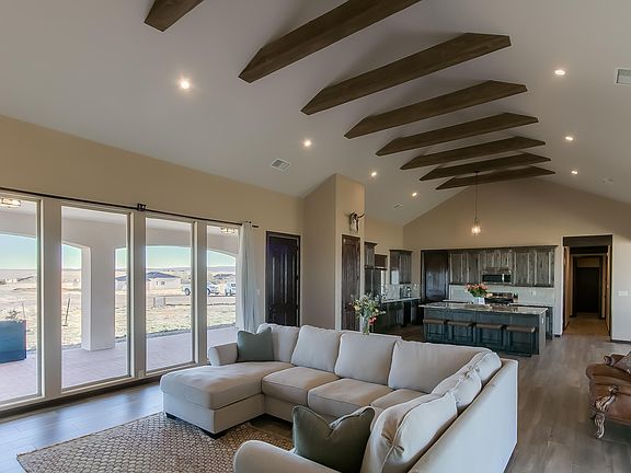 - Beamed Ceilings, Breakfast Bar, Ceiling Fan(s), Cathedral Ceiling(s), Dual Sinks, Great Room, Home Office, Kitchen Island, Main Level Primary, Pantry, Shower Only, Separate Shower, Walk-In Closet(s)