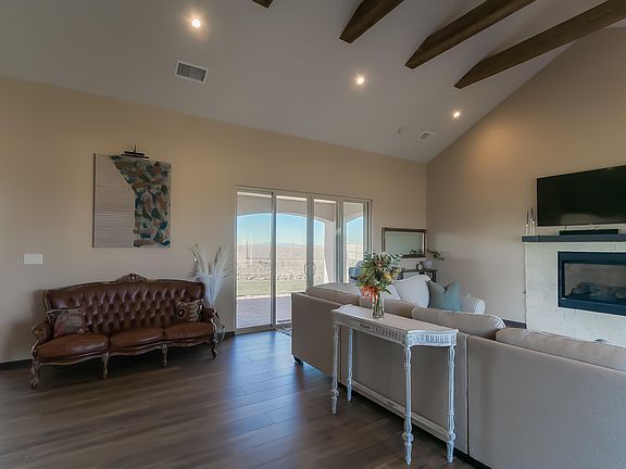 *ASSUMABLE LOAN FOR QUALIFIED BUYERS AT 5.625% INTEREST RATE. Introducing a pristine Northern NM style mountain retreat only 19 miles from ABQ and at the top off a cup-de-sac! This newer custom, single-story haven boasts 3 bedrooms & 2 bathrooms, offering modern comfort in a tranquil setting. Admire majestic views of South Mountain from every angle. Step inside to discover an inviting open floor plan, adorned w/ knotty, quality-alder wood cabinetry, beamed cathedral ceilings, & elegant granite countertops. Experience luxury w/ 8 ft solid wood doors, stainless steel appliances, spacious pantry & a cozy fireplace. Efficiency meets sophistication w/ a tankless water heater, water softener, refrigerated AC, natural gas-- no propane, H2O co-op, & a 90+% high efficiency furnace.