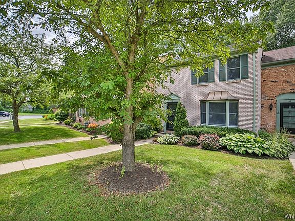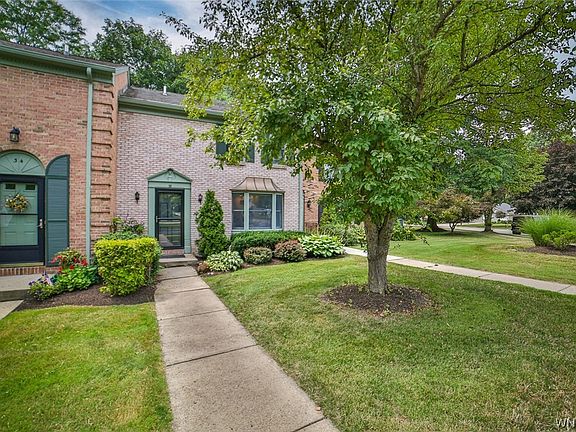 Professionally maintained, spacious, two-level Townhouse offers plenty of time to enjoy all the Village of Hamburg has to offer. This 3 bedroom 2.5 bath home with full basement is just a short ride to Buffalo and minutes from the I-90, & routes 75 & 20. Beautiful private patio with serene views of the HOA-maintained and gorgeous common (but secluded) courtyards. Large, updated, eat-in kitchen filled with natural lighting from the large bay window. Built-in pantry. Upstairs boasts a bright owners' bedroom & en suite bath with large, organized closets. Generously sized closets in secondary bedrooms as well. Tons of storage throughout. Move-in ready, living room carpet 2021, front foyer and hall flooring 6-8 months new, freshly painted throughout. Stove and washing machine 2022. The living space exudes functionality and peaceful care-free living. Detached designated garage with opener. Plenty of open parking for guests.