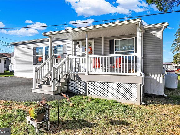 Welcome to this move in ready , well maintained home! The owners personalized this floor plan and made upgrades. Key features you will love is the kitchen farm sink, cabinets were upgraded to include a pantry cabinet, the owners also expanded the living room for more space and openness and placed a large shed in the rear of the home.. The front porch was another lovely upgrade where you can sit and relax. The home was thoughtfully placed to face the open field , has a wonderful view and is very quit away from the main street. Your guest/friends will appreciate there is additional parking right across the street from the home with an additional 4 parking spaces. The main bedroom has a large walk in closet, a large bright main ensuite and a ceiling fan. The second bedroom also has a large closet with a ceiling fan and the main bathroom is next to the second bedroom. The washer, dryer and refrigerator, dishwasher , stove with gas cooking all stay for your comfort and convenience. There are 2 propane tanks which are leased, which provides very efficient heating. I know you will love this well designed, comfortable home with great views! The HOA covers the water, trash, sewer. lot rent. Schedule your private showing today.