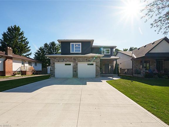 Welcome to 38 Lakeview Avenue in Port Dover – just steps from the lake! This stunning 2,816 sq. ft. home, built in 2019, blends modern finishes with a prime location, offering 4 bedrooms, 2.5 bathrooms, and an inviting layout perfect for families and entertainers alike. Inside, you’ll find engineered hardwood floors throughout the main and upper levels, custom light fixtures, and a neutral palette that creates a bright and timeless feel. The open-concept kitchen showcases white cabinetry, quartz countertops, an oversized island with shiplap detailing, stainless steel appliances, and live-edge shelving. The dining area offers wall-to-wall windows with a walkout to the covered porch, while the spacious great room features a cozy gas fireplace. Convenient main-floor laundry with cabinetry, garage access, and a nearby powder room add functionality. Upstairs, the primary suite includes a luxurious 4-piece ensuite with dual sinks, a walk-in shower, and a generous walk-in closet. Three additional bedrooms provide flexibility for family, guests, or a home office. The upper-level bathroom is complete with a custom vanity and quartz counters. Outside, enjoy a double garage with oversized doors, a double concrete driveway, a fully fenced yard, covered porch with pot lights, and gas BBQ hookup—all set on a large lot ideal for outdoor living. Located just down the road from the water, this home combines everyday comfort with the lifestyle Port Dover is known for.