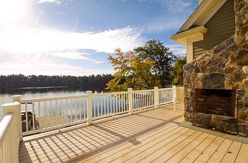 This lake front property offers a truly stunning setting and superior construction, a remarkable combination of a custom-designed home, top-rated schools and scenic views lets you live your dream vacation every day! This builders home has all the amenities you would expect in a home of this caliber. Enjoy panoramic lake views from your Azek wraparound deck complete with outdoor stone fireplace. Interior finishes include leathered granite, custom heart of pine island and flooring. Designed to showcase lake views, the open floor plan makes entertaining a delight. Family room features custom stone wood-burning fireplace and surround sound system. First and second floor master bedrooms, as well as two additional rooms, play room and laundry on second floor. Finished walkout basement with bathroom leads to 90 of waterfront fun. With sunset cruises, bonfires, pond skating and more, this spectacular setting is enjoyed year-round.