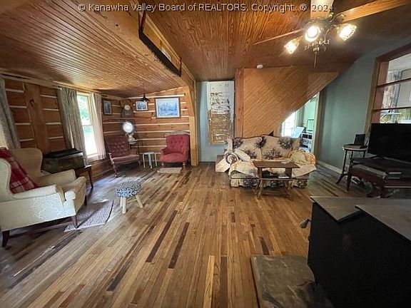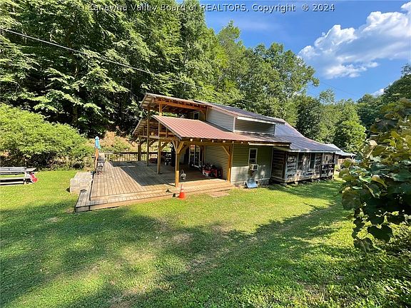 Sitting on almost an acre, you'll find this 2200 sq ft home featuring 4 bedrooms and 1 bathroom with kitchen, dining and living rooms opened up to each other. Property includes multiple outbuilding, chicken coop, apple trees, blueberry, grape and kiwi vines. Very large deck on the upper side with some privacy.