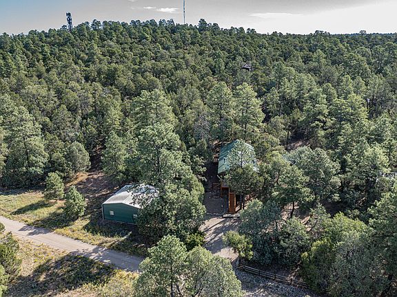 Welcome home to a beautiful log cabin nestled among the pines situated on a 1.9 acre lot in Tijeras. Two large workshops, one with power and plenty of room to store the toys! This lovely home features vaulted ceilings in the main living area and kitchen. Updated kitchen with granite counters, stainless steel; stove/oven, microwave and dishwasher. Kitchen bar with custom tile and river rock surround. The pellet stove will keep you cozy on those cold nights! Updated 3/4 bath in Master bedroom with walk-in closet. Updated Full bath on lower level. Tile floors in kitchen and bathrooms. Separate RV parking area. Property is on community well.