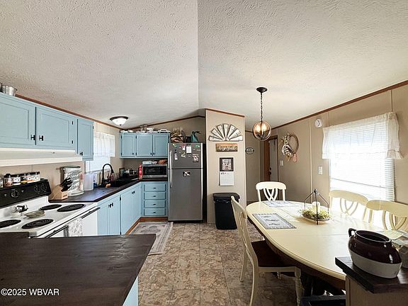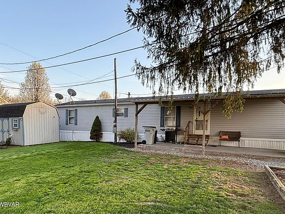 This Charming 3 Bedroom, 1 Bathroom home offers affordable living. The open concept design featuring a living area that flows into a spacious eat-in kitchen with ample cabinet space. Relax after a long day on the covered patio. Includes shed for additional storage. Lot rent is $470/month- includes sewer. Easy drive to PA-64 and only a 30 mile drive to State College. Schedule your showing today!