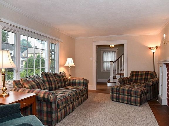 Nestled on a picturesque tree lined street of the Horace Mann neighborhood is this jewel at 38 Lovell Road. Classic Colonial boasting original architectural details including living room and dining room built-ins, hardwood floors and substantial moldings. Inviting fireplaced living room, a lovely space to curl up with a book during those winter months, with adjoining study featuring vaulted ceilings, dining room and renovated kitchen with granite make this first floor space perfect for your next gathering. Second level offers three well-sized bedrooms, full bath, linen closet and walk up attic with substantial storage space. The flat rear yard has oodles of space for recreation or gardening and the back deck is the perfect place to enjoy morning coffee or summer evenings under the stars. Garage, newer heating system and hot water. Within walking distance to Whole Foods Plaza, commuter rail or bus, parks and more, this well priced home is a must see!