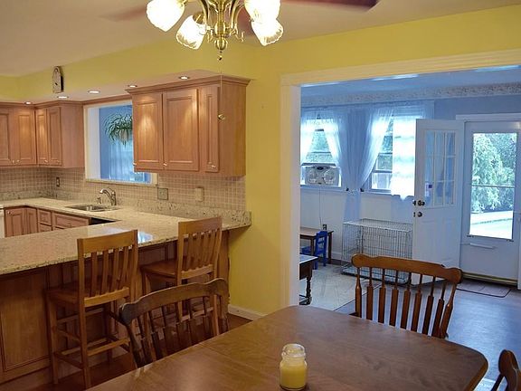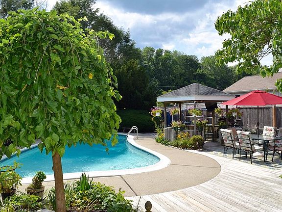 Impeccably maintained property with backyard oasis! This 1900+ sf home will spoil you with its private fully-fenced back yard with inground pool, gazebo with electric and cable, two sheds and side yard, recently renovated kitchen with quartz countertops, hardwood floors, 1.5 baths, enclosed porch/sun room, living room, family room, three bedrooms, two car garage, and public utilities. Within last 10 years home has been updated with a new roof, new heating system, new windows, updated kitchen, resurfaced/retiled pool, new carpets, fresh paint, and refinished hardwoods - that is pride of ownership! Corner lot set back from street with mature landscaping. All appliances remain. Nothing to do but move in and enjoy this home and this weather!