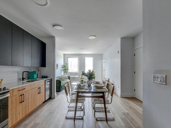 2 bedrooms 2 baths 2 MONTHS FREE NO BROKER FEE Close to public transportation, a park, freeway access, dining, and shopping opportunities. Hardwood floor! Beautiful modern kitchen! Great natural light! We require proof of income and good credit.