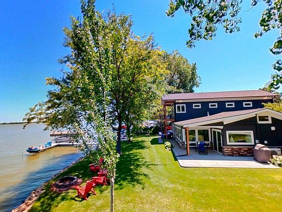 This home is part of our Red Bow Campaign — a seasonal event featuring limited-time price incentives. The red bow in the first photo marks homes offering special holiday savings, available only through January 1. After that, the savings are gone! Luxury Lakefront Living at Its Finest – Fully Furnished on Johnson Lake Welcome to your private peninsula retreat on the highly sought-after Johnson Lake. Thoughtfully remodeled from top to bottom, this fully furnished four-bedroom, four-bathroom lakefront estate delivers elevated design, exceptional comfort, and a true turnkey lifestyle—complete with dock, shore station, boat, and jet ski included. The open-concept main floor is designed to capture natural light and maximize views, with walls of windows and dual sliding doors leading to two spacious patios. A custom chef’s kitchen serves as the heart of the home, featuring an oversized island with built-in power and seating, double ovens, beverage fridge, and pantry. A cozy gas fireplace anchors the living area, offering year-round warmth and relaxation. Two main-floor guest bedrooms share a well-appointed Jack & Jill bathroom, while a separate half bath with laundry adds convenience. The main floor also includes a dedicated office with expansive lake views, ideal for remote work or creative space. Upstairs, the primary suite is a private haven. Enjoy a spa-inspired ensuite with double vanities, soaking tub, walk-in shower, and separate water closet. A large walk-in closet with built-in coffee station and a private balcony complete this luxurious retreat. The detached three-stall garage includes finished guest quarters above complete with a fourth bedroom, full bath, and closet. Set on a rare peninsula lot, this home offers panoramic lake views from nearly every room. Every detail has been curated with high-end finishes, thoughtful functionality, and designer style throughout. This is a rare opportunity to own one of Johnson Lake’s most impressive, move-in ready homes...now available at a special Red Bow Campaign price. Schedule your private showing today.