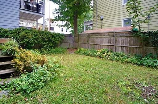 Renovated 6 room apartment with formal dining room open to living room, office or third bedroom, granite and stainless kitchen, gas heat and cooking, private rear deck and fenced yard located on one of the most desirable streets in Cambridge. This apartment has four sided exposure on a high first floor featuring maple floors, high ceilings, extra storage and washer/dryer. Great location near Harvard, Inman, Kendall and Central Squares, MIT, and MBTA Red line. Across the street from Edward S. Duffet Park and Playground.