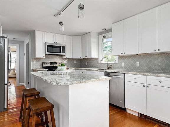 Pristine 4 bed, 2 bath Cape on a dead end street. Completely redone in 2017, you'll love everything about this beauty! From the kitchen with large island, granite tops and stainless steel appliances with gorgeous tile backsplash, to the hardwoods throughout, updated bathrooms, and large bedrooms. Many possibilities to finish the basement that already has a custom built bar. Deck out to a great backyard to enjoy with the family or entertain. Connected to sewer and water! Convenient location, yet still quiet.