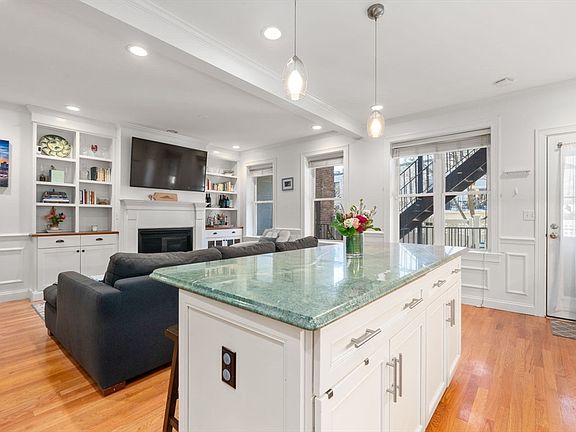 Located on a picturesque gaslit street between Monument Sq and Training Field Park, this stunning 2BR/2.5BA duplex offers 1,470 sq ft of beautifully finished space and one off-street parking spot. The open main level features a sunny living room with gas fireplace, custom built-ins, crown molding, and wainscoting, a dining area, and a chef’s kitchen with white cabinetry, granite countertops, stainless appliances, and a large island with bar seating. A private deck is directly off the living area, with access to a common roof deck offering sweeping city and Monument views. The generous primary suite includes a corner exposure, two closets, and an en-suite bath with jetted tub. A gracious foyer and half bath complete the main level. The lower level offers a spacious guest suite w/full bath and an office area. Amenities include: Central Air, in-unit W/D, and private storage.