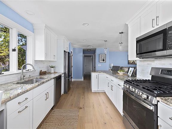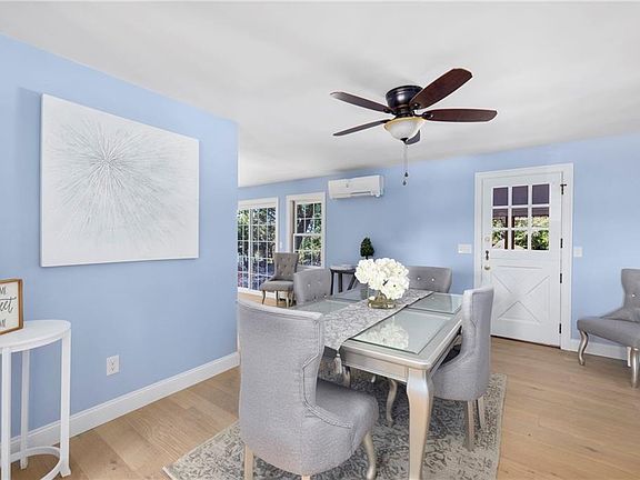 Transformed and fully modernized beautiful Ranch with three bedrooms and three bathrooms. Plenty of brand-new windows and lighting for lots of natural illumination. The home offers an open floor plan with a center fireplace for cozy cool evenings. The flow from the living room, dining room and kitchen make it a must to enjoy entertaining guests. The kitchen offers new stainless-steel appliances, plenty of seating at your granite peninsula and a kitchen bar. Plenty of cabinets and closets throughout for storage. First floor laundry was added for easy accessibility. Anderson slider allows easy access to your tree lined, private-level back yard giving enjoyment and sanctuary. Enjoy your master ensuite with three closets, two other generous-sized bedrooms and double sinks in the main bathroom. Major updates include septic system, 200 Amp electric, new plumbing, roof, paved walkway ,porch including trek and paver decking and AC mini splits and new asphalt drive-way. Finished walk-out basement with fireplace for more living space. A total of 2440 square feet. Two-car oversized garage with electric door openers. So much to enjoy!