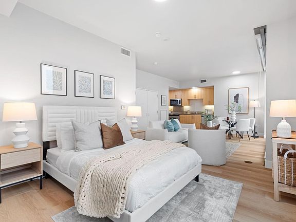 Elevate your lifestyle in downtown San Jose with this stunning condo in the award-winning AXIS Highrise, where modern sophistication meets luxury living. This beautifully designed unit features floor-to-ceiling windows that flood the space with natural light and showcase tranquil pool views. The open-concept living area boasts sleek hardwood flooring and soaring ceilings, while the gourmet kitchen, a chef's dream, offers top-of-the-line stainless-steel appliances and exceptional functionality. The spacious primary area serves as a serene retreat, highlighted by abundant natural light, recessed lighting throughout, and a freshly updated bathroom.