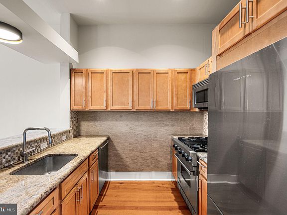 This stunning street-level 2-bedroom, 2-bathroom condo offers a rare blend of historic charm and modern sophistication in one of Philadelphia's most sought-after neighborhoods. Featuring soaring 13-foot ceilings and dramatic floor-to-ceiling windows, the space is flooded with natural light, highlighting the rich character of exposed brick accent walls and open-concept living areas. A private entrance offers the convenience and privacy of townhouse-style living, while inside, you'll find a contemporary layout perfect for entertaining or relaxing. Both bedrooms are generously sized, and the primary suite includes an en-suite bath for added comfort. Central air, in-unit laundry, and thoughtful design details throughout complete the package. Located in the heart of Old City, you're steps from Philadelphia's finest restaurants, cafe's, and historic landmarks. Easy access to public transit and major highways makes commuting a breeze. Available for immediate occupancy. Don't miss this exceptional opportunity to live in one of Philly's most vibrant and walkable neighborhoods.