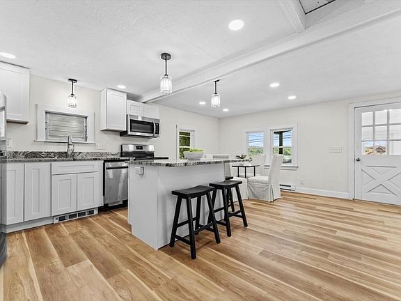 Perched on a half-acre with sweeping views of Lake Maspenock, this fully renovated home blends modern updates with unbeatable outdoor access. Enjoy a brand-new kitchen with white cabinets, granite counters, and stainless steel appliances, an updated bath, new flooring, recessed lighting, new roof, and new windows. Two bedrooms include one with a walk-in closet and its own exterior entrance. A four-season room offers the perfect spot to take in the water views year-round. Easy access to swimming, boating, fishing, and kayaking, plus direct connection to 283 acres of Peppercorn Hill Conservation Area with hiking trails that run behind the property. Heated 3-car detached garage for additional storage or work area. Bonus shed on property provides space for all your gear. Great potential to add an ADU