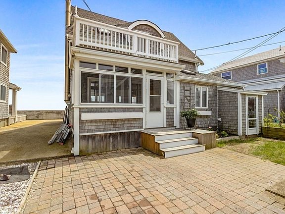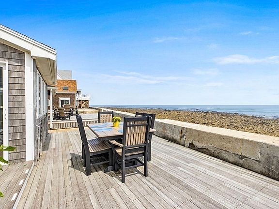 The soothing sound of rolling waves, the sweet smell of salty air and sunrises that will stop you in your tracks! This light infused house sits atop the High Road in Brant Rock with 180 incomparable ocean views -- and views from almost every room in the house! Ideal spot for family & friends, gatherings, staycations and "positive vibrations". Open floor plan featuring a white kitchen with quartz counters & stainless steel appliances, dining area with built in bench and driftwood chandelier, comfy living room with wood stove and a shiplapped sunporch for morning coffee & afternoon cocktails. Upstairs you'll find 3 bedrooms (one currently being used as an office) and a second full bath. Screened in porch entry - Detached garage with room above offering more space & endless options - And expansive deck with awe-inspiring vistas of sea and sky! You're Invited! Come see, and you'll never want to leave!