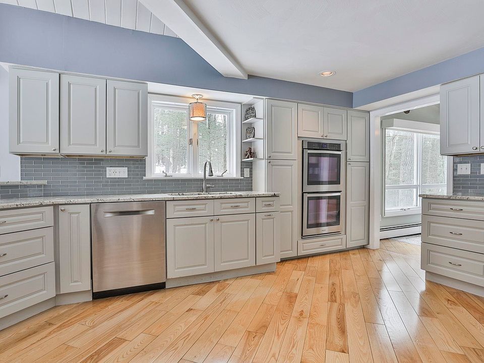 Back on the market pending signed release! Quick closing possible. Tucked into a tranquil, wooded setting, minutes from Amherst Village & 101, this distinctive contemporary combines privacy, beauty & convenience. Known by its owners as “the treehouse,” the home feels immersed in nature; whether enjoying the back deck surrounded by mature trees, listening to the seasonal babbling brook, or taking in vibrant fall foliage. Inside, the bright, open-concept main level is designed for easy living & entertaining. The gourmet kitchen has granite counters, a gas cooktop with retractable downdraft vent, double ovens, stainless appliances & a wet bar. Bamboo & maple flooring, pocket doors, a gorgeous stone fireplace, and abundant windows provide warmth & architectural interest. The spacious, sun-soaked primary suite includes walk-in closet, separate office, and an ensuite bath with dual sinks, tiled shower & jetted soaking tub. The finished lower level includes 2 bedrooms, full bath and laundry; flexible living space with walk-out access to the backyard. Highlights include mini-splits for efficient heating/cooling, hardwood & tile flooring throughout, large attic for storage & a detached 2-car garage with extra parking. The beautifully maintained lawn, lilac bushes & Japanese maple complete the setting. Located close to hiking trails, Baboosic Lake, restaurants, shopping, and commuting routes to Nashua & Manchester; offering a rare combination of privacy, style, and accessibility. A truly inviting home that is special and serene.