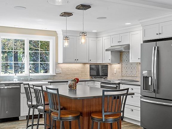 The gorgeous kitchen with tons of storage is just the beginning of the story for this amazing home. Current owners have reimagined and renovated almost the entire home and property. The things you might expect have all been done (roof, windows, siding, deck, 2022 boiler, A/C) but it’s the unexpected where this house sets itself apart. Fabulous mudroom with heated floors and a closet with cubbies that you dream about, honed quartz counters in the kitchen, two ovens, farmhouse style sink and light fixtures, two pantry closets, second floor homework room and stunning tiled bath. The flat yard overlooking the golf course has a pool, gorgeous stone patio with fire pit, masterfully engineered tree house, zip line, tire swing, outdoor kitchen with built in grill and storage, concrete counters and custom fit cover. Your home will be THE destination for social gatherings. And if you want to move inside, the recreation room with built in bar and refrigerator drawers is perfectly set up for fun!