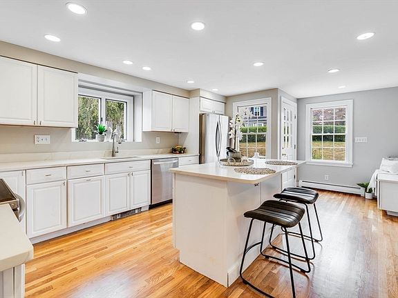 Welcome to this updated move-in ready 3-bedroom, 2.5-bath home in the scenic seaside town of Marblehead. Tastefully done, this home blends modern style with everyday comfort. The white kitchen features new quartz counters & island seating & leads to dining, living, & bonus rooms all with hardwood floors. Hardwood floors continue upstair to the primary en suite with large walk-in closet & updated bath while the 2 additional bedrooms have large walk in closets - one of the bedrooms even connects to the main bathroom creating another en-suite! The 2nd floor also features a fantastic office/homework area. The lower level can easily be finished for more space. Outside, enjoy the paver driveway, patio area, & large yard. Located in a fantastic neighborhood, just under a mile from the beach & marinas & with easy access to the commuter rail & downtown Marblehead & Salem, this home invites you to experience the charm & beauty this area has to offer! A one year home warranty is included!