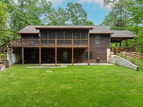 Motivated Sellers are now offering a 1 Year Home Warranty with an acceptable offer. This captivating 4-bedroom, 3-bathroom cabin-style home with vaulted ceilings offers a perfect blend of rustic charm and modern comfort. Boasting a picturesque exterior with a circular drive, 2 car carport and a fenced LEVEL back yard, this property exudes warmth and character from the moment you arrive. Step inside to discover a welcoming interior adorned with real wood floors, complemented by the inviting ambiance of a gas stone fireplace, ideal for cozy evenings with loved ones. The heart of the home features granite top counters and a copper double-sided kitchen sink, creating a gourmet haven for culinary enthusiasts. Entertain guests in style with a spacious living room and separate dining area, seamlessly flowing onto a screened back porch, perfect for enjoying the tranquil outdoor setting. The main level also includes a luxurious master suite plus two additional bedrooms, providing ample space for relaxation and privacy. Convenience meets functionality with a dedicated laundry room on the main floor and a basement offering a gas fireplace, family room/game room, storage room, and two bonus rooms, ideal for an office or gym. Outdoor enthusiasts will appreciate the fire pit area and useable backyard, offering endless opportunities for outdoor enjoyment. Additional features include window treatments, a dehumidifier on the new Hvac system and a tankless hot water heater for added efficiency. Plus, never worry about power outages with the Generac generator. Don't miss this rare opportunity to own your own slice of paradise in an active Mountain community close to the recreation center with an indoor pool, fitness center, tennis/pickleball courts and much more. Resort style living full of activities designed for everyone including Fido. Great for Fulltime, Part Time, or Short Term Rental.